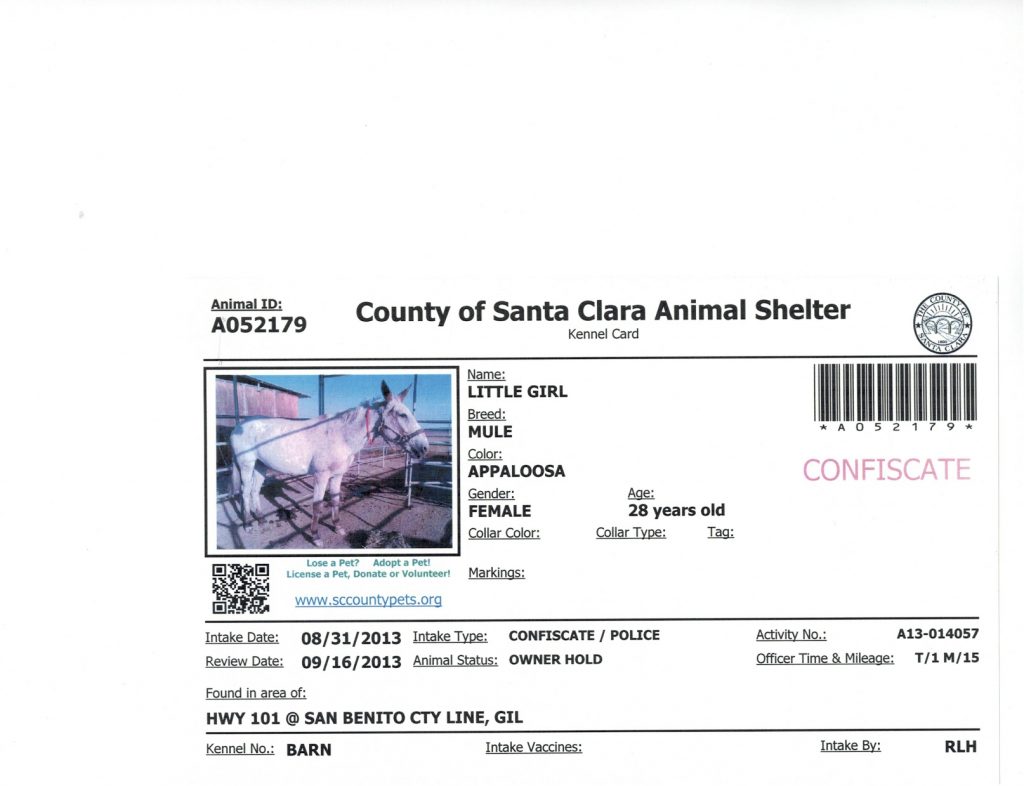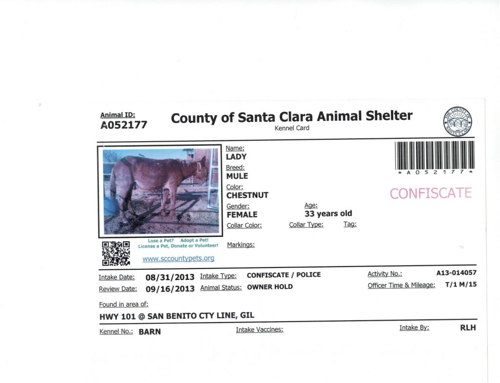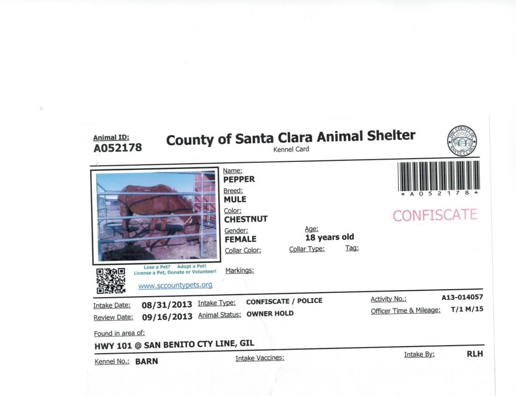 Animal Shelter charges for impounded mule