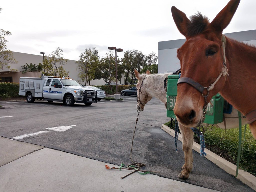 She replied, “I’m in Chula Vista and one of your mules is outside Starbucks without a handler. I waited, hoping maybe someone was inside getting a drink.” I replied back that I was inside Starbucks.