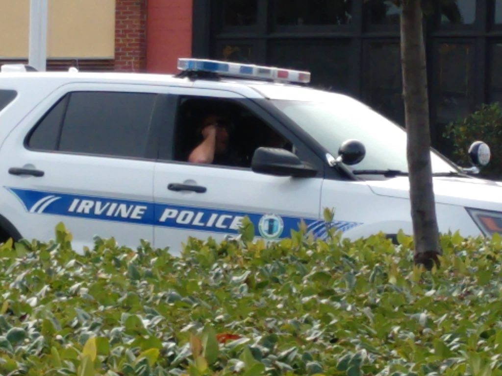 Coming into the City of Irvine this morning, the Mules met some Irvine Police Department police officers. They stopped their vehicle, came out to meet us, and told us we were breaking a city ordinance by walking on the sidewalk.