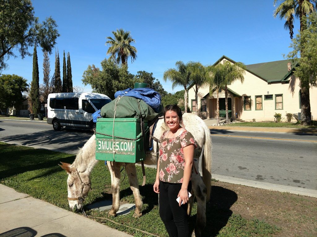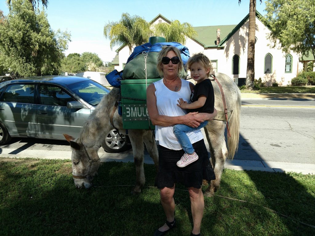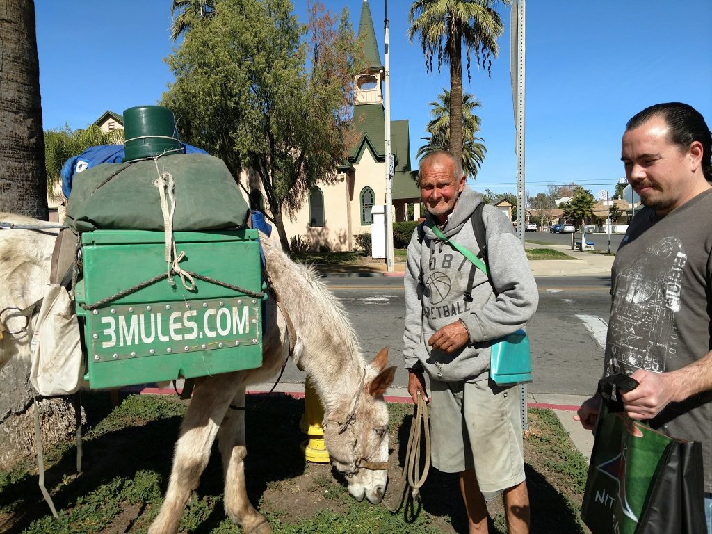 After that contact with the CHP we continued south and stopped at Starbucks to charge our smartphone and get a cup of coffee. We were in there for about an hour. I had secured Little Girl to a pole in the parking lot. I could see through the window that police officers were pulling up to where Little Girl was tied. I then went outside to talk to the officers and told them that the mule belonged to me. They said okay that’s fine. They said that they had gotten calls that someone was concerned about the mule and that they needed to respond, and that was that.